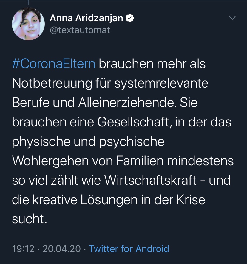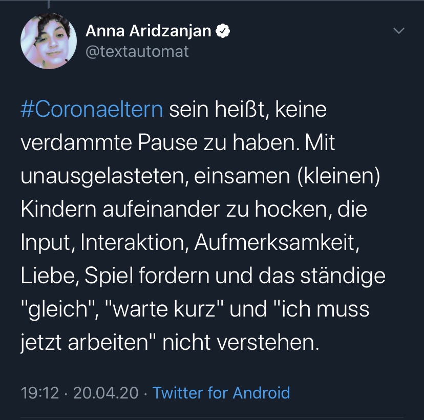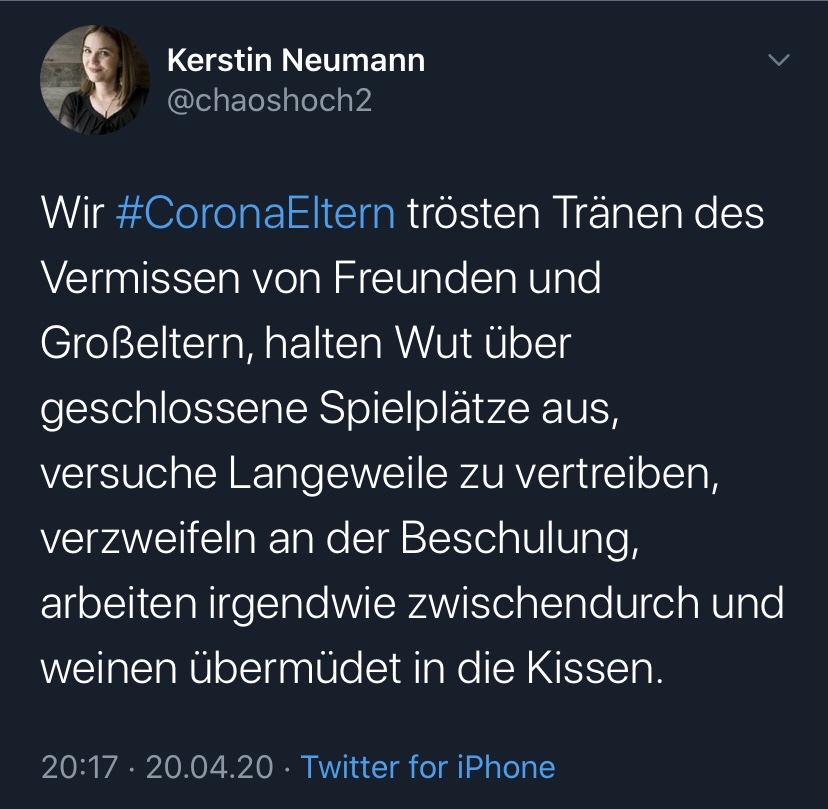 Zwischendurch möchte ich euch heute statt meinen üblichen Fotos Aussagen von Eltern, die ich unter dem Hashtag coronaeltern (#coronaeltern) gefunden habe, zeigen.