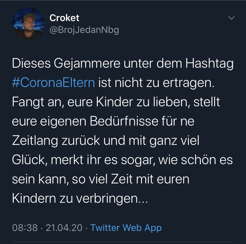 Unter dem Hashtag findet man viele Stimmen betroffener Eltern oder Elternteile. Aber auch Stimmen, die das alles verständnislos als Gejammer abtun: