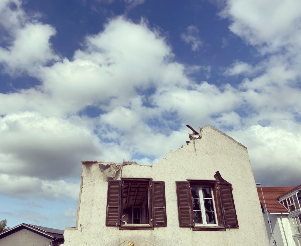 Dieses alte Häuschen wurde nun abgerissen und mit ihm leider auch der daneben stehende Baum, um einem grossen Neubau Platz zu machen. Ich fand es recht spannend zuzusehen, wie Schritt für Schritt mit einem grossen Bagger Wand für Wand, Stein für Stein abgetragen wurde. Wie jeden Tag weniger übrig war von diesem Haus und nach einer Woche dann gar nichts mehr.