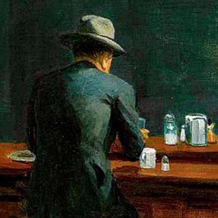 Meine Erinnerung sieht aus wie ein Gemälde von Edward Hopper. Ein Mann sitzt an einem Tisch. Vor ihm steht eine Flasche Bier und ein Aschenbecher. Er liest eine Zeitung. Die Luft ist vom Zigarettenqualm etwas rauchig, wie Nebelschwaden, grau und stinkend. Aber das sähe man auf dem Bild ja nicht.