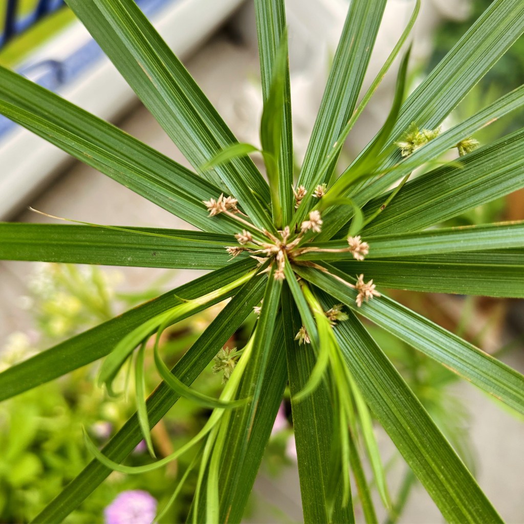Hier auf meinem Balkon ist er bereits angekommen. Überall um mich herum stehen Pflanzentöpfe mit viel grün und vielen verschiedenen Blumen. Eine Blumenwiese in Töpfen.