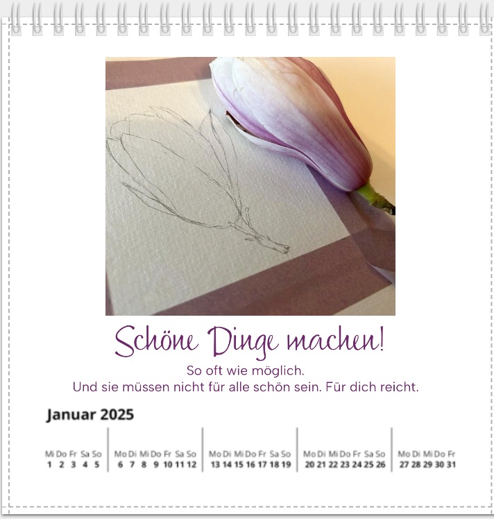 Das ist mein Kalender-Text für den Januar 2025 und ich glaube, vielleicht ist er einer der wichtigsten überhaupt. Ganz besonders jetzt, im Januar 2025. Wir brauchen ganz dringend viele, viele Menschen, die ganz viele schöne Dinge machen.