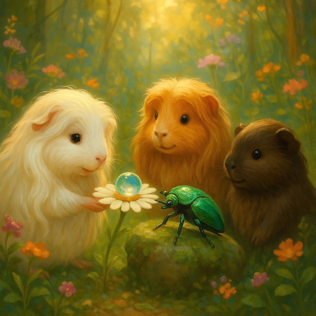 Es war ein warmer Nachmittag im Garten. Die Sonne schien, die Blumen dufteten, und die drei Meerschweinchen lagen faul im Gras herum.