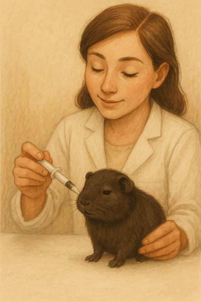 Meerschweinchen müssen fast die ganze Zeit etwas fressen. Wenn sie das nicht tun, kann es schnell gefährlich werden. Die Menschen-Mama. war zum Glück eine richtige Expertin. Sie zögerte keine Sekunde.