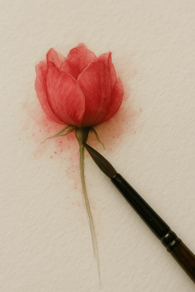 Auf einem alten Schreibtisch, unter einem Stapel vergilbter Papiere und halb ausgetrockneter Farbtöpfchen lag ein kleines, fast vergessenes Bild. Die Linien waren fein und schwungvoll gezeichnet und die zarten Blütenblätter leuchteten noch immer in einem kräftigen rot. Es war eine Blume – eine, wie sie nur in Träumen wachsen konnte. Der Stengel war ein wenig krumm, kein Blatt perfekt. Und doch war sie wunderschön.