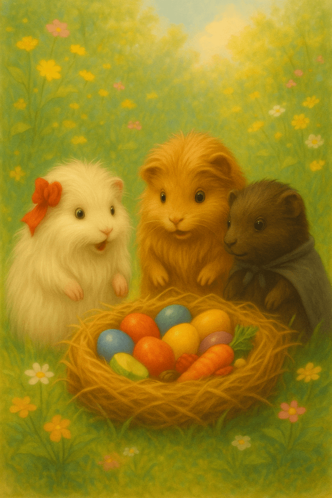Am Ostermorgen wachten Arja, Tina und Jimmy ganz früh auf. Irgendetwas lag in der Luft, es roch nach Morgentau, feuchtem Gras und… War das Schokolade? Meerschweinchen haben nämlich eine ganz gute Nase!