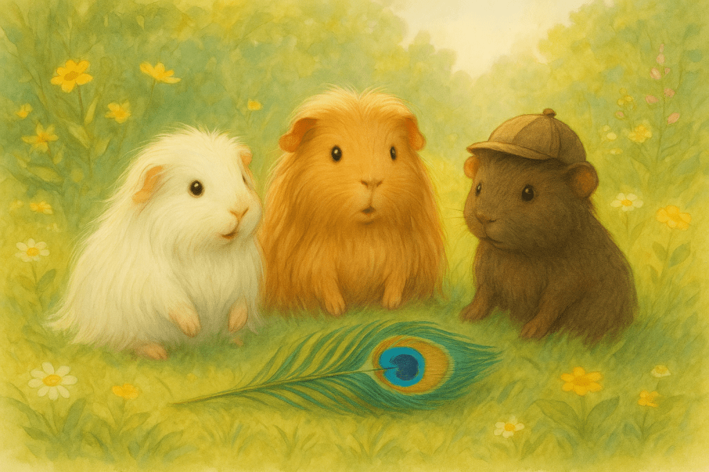 Die drei Meerschweinchen setzten sich um die geheimnisvolle Feder herum und betrachteten sie. Tina drehte sie vorsichtig mit der Pfote hin und her.
