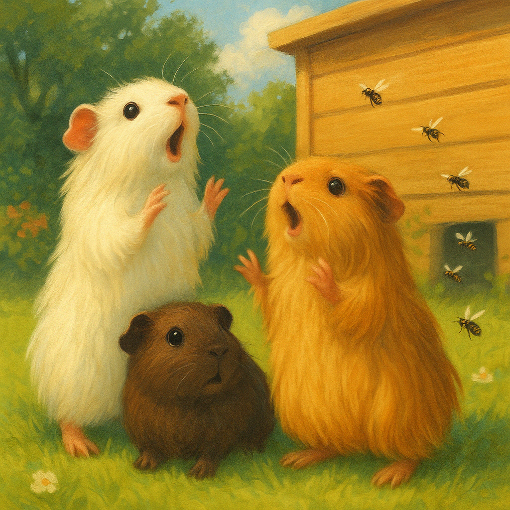 Kaum kam er näher, surrten schon mehrere Wespen um ihn herum. Sie kamen bedenklich nah und Jimmy bekam Angst. Er quietschte, sprang zur Seite und rannte zurück so schnell er konnte, um sich hinter Arja zu verstecken. Er wäre ja so gern der Mutigste von den Dreien gewesen, aber er war es einfach nicht. Jedenfalls nicht heute.