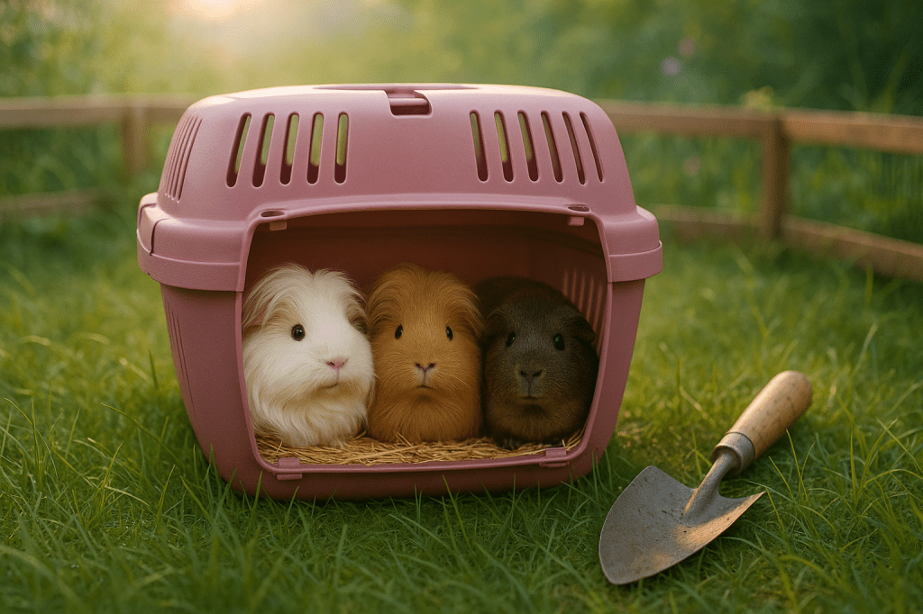 Ganz anders die beiden andern Meerschweinchen DIE. fanden es toll, eine neue Gegend auszukundschaften.
