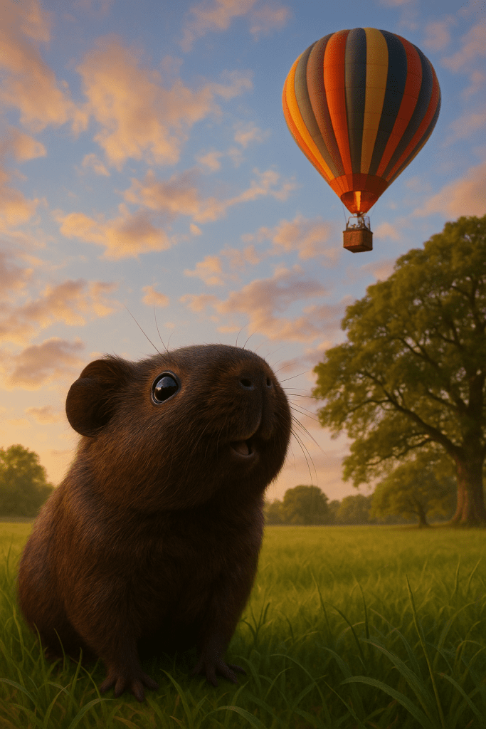 “Das ist kein Ufo, Jimmy“ sagte sie mit ihrer beruhigendsten Stimme. „Das ist ein Heissluftballon. Im Korb können der Pilot und Menschen mitfliegen.“
