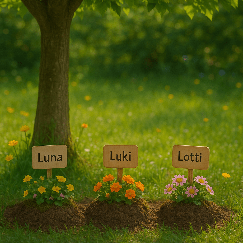 Vor ihnen lagen drei kleine Gräber. Auf ihnen wuchsen bunte Blumen und in jedem steckte ein kleines Holzschild. Die Namen darauf waren mit einem schwarzen Stift geschrieben: Luna, Lotti, Luki.