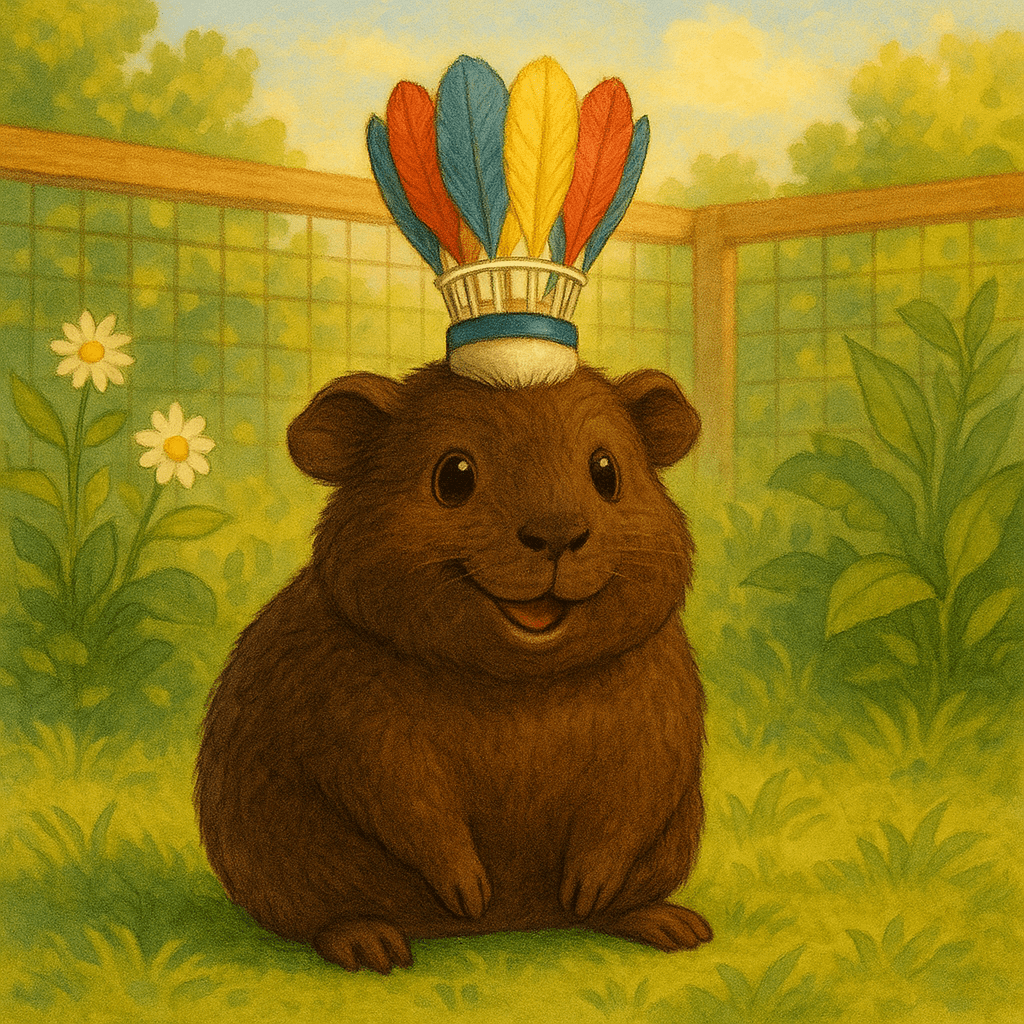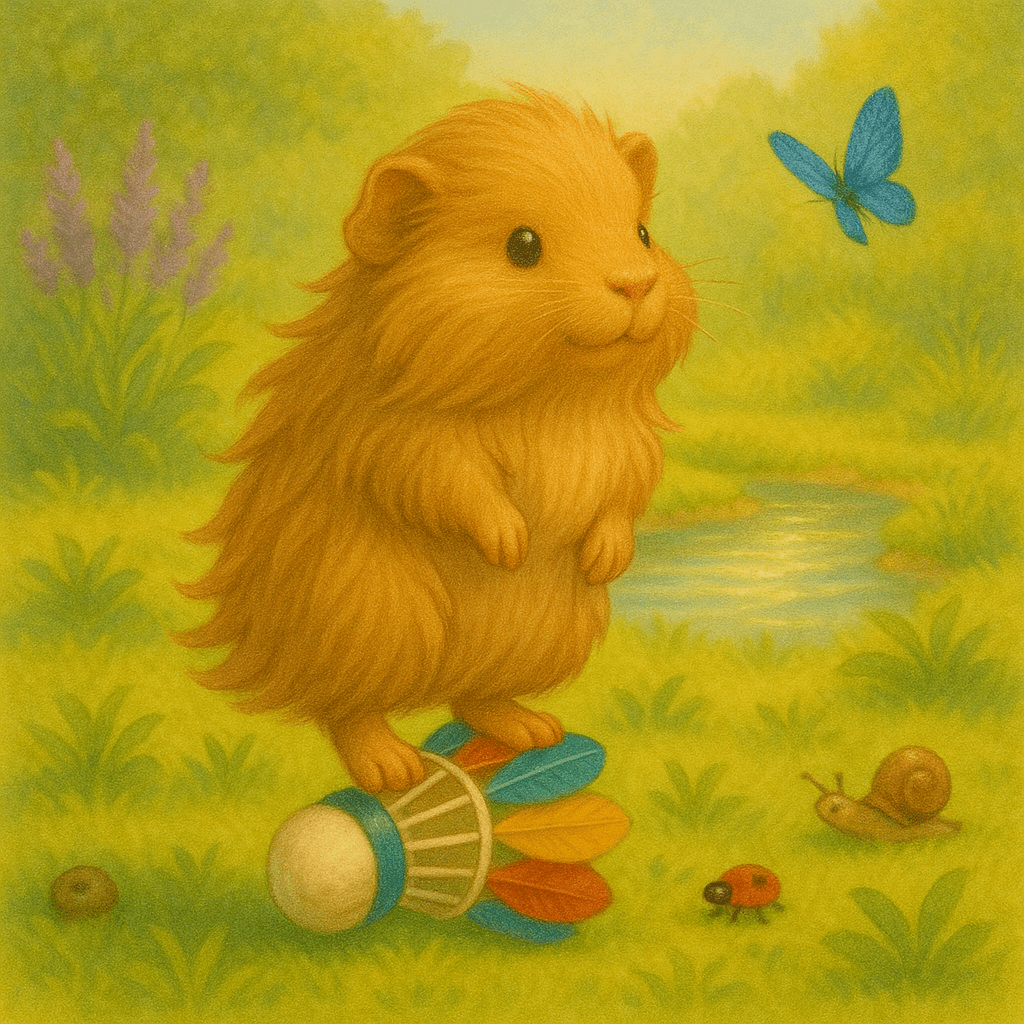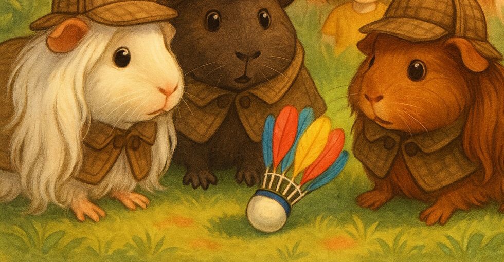 Die Menschenmama öffnete die Gehegetür und trat mit den Kindern hinein. Die drei Meerschweinchen wichen zur Seite und beobachteten neugierig, wie die Kinder überall nach ihrem Federball suchten. Tatsächlich. fanden sie ihn nach kurzer Zeit und die Meerschweinchen staunten, als sie merkten, dass es sich um ihr komische Objekt handelte.