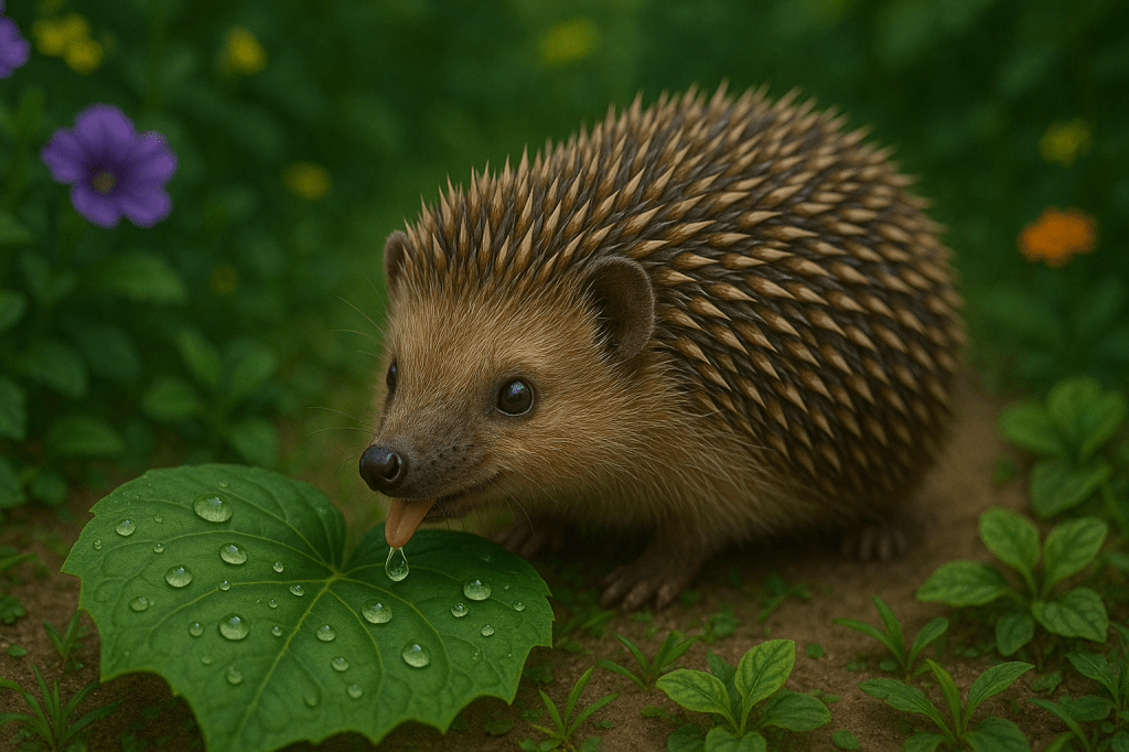 Der kleine Igel war tatsächlich sehr durstig und deswegen auch schon ganz schwach. Er fing sofort an, das Wasser aufzulecken und schaute sie dankbar an, als wollte er sagen: „Danke, ihr drei kleinen Superhelden!“