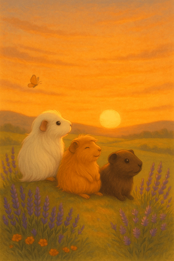 Also zogen sie mutig los, um den besten Beobachtungsposten zu finden. Sie kletterten auf einen kleinen Hügel im Garten, der fast so hoch war wie ein Meerschweinchen-Berg.
