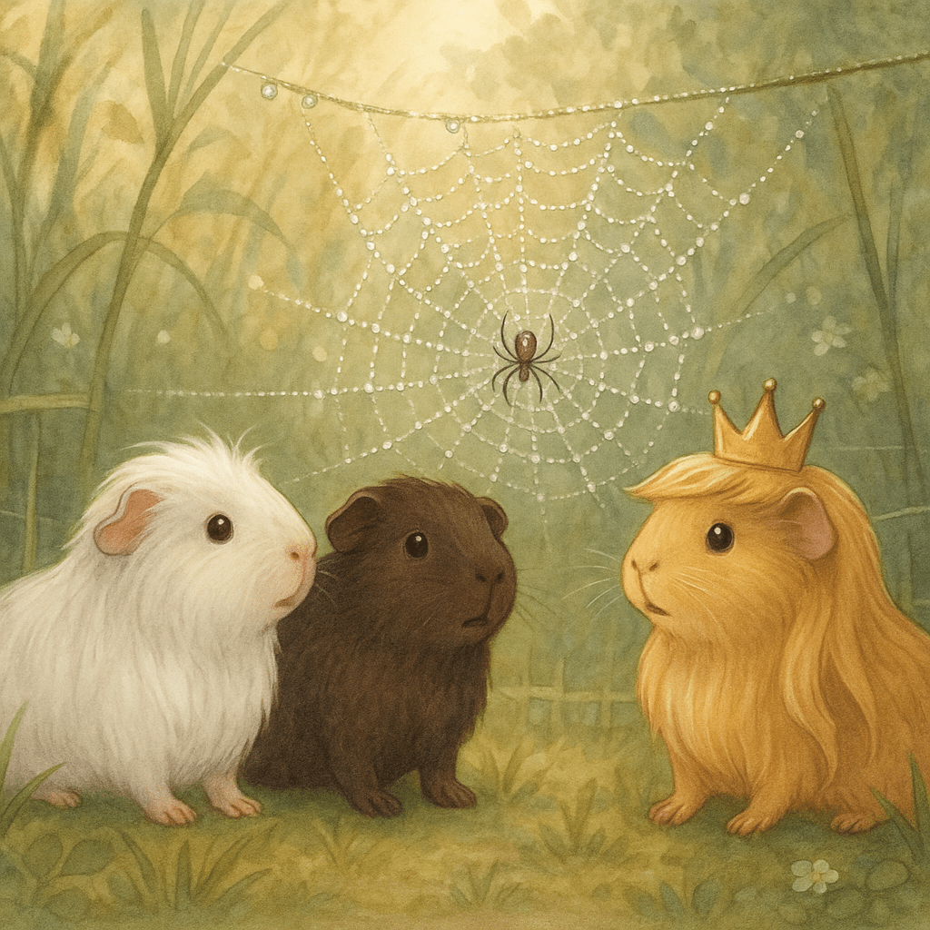 Die drei kleinen Superhelden blieben noch eine Weile still sitzen, während das Netz im Sonnenlicht schimmerte. Und als der Nebel sich verzog, fühlte sich der Garten ein kleines Stück magischer an als zuvor.