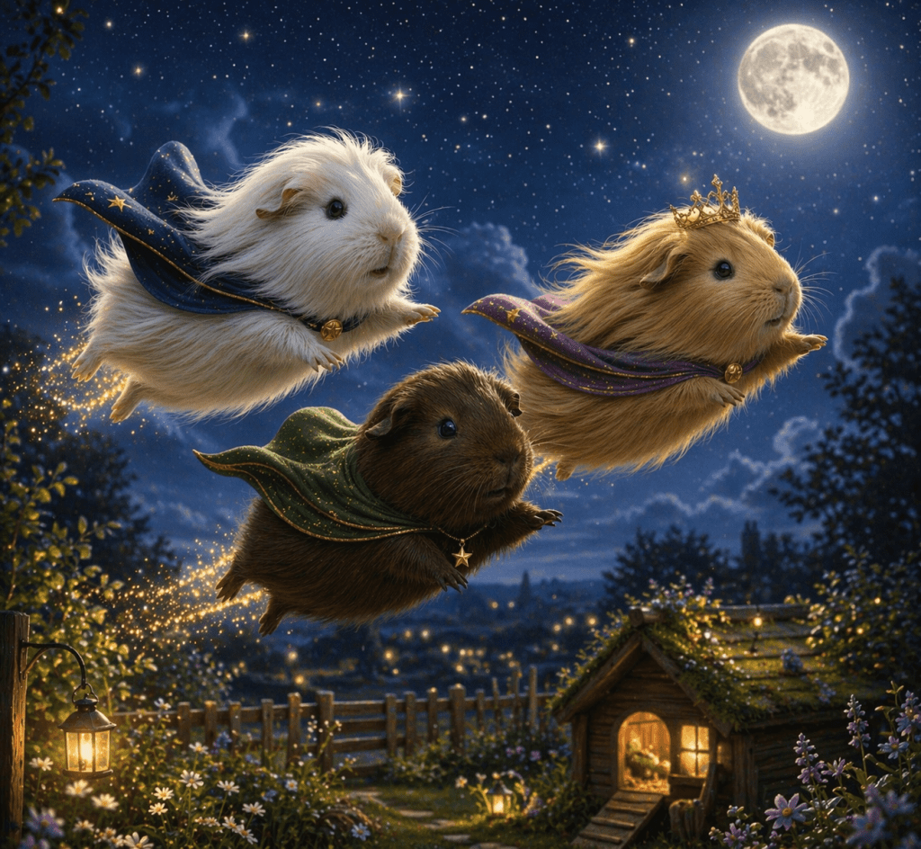Tina flog vorsichtig neben ihm, ihr Krönchen glitzerte im Mondlicht. „Das ist wunderschön…“